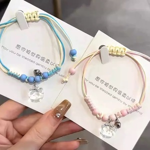 漫画ハローキティ編みブレスレット女性のためのハイエンド甘いガーリースタイルピンク手織りブレスレット親友ギフト