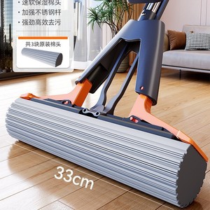 【水絞り付きフルパッケージ】33cmモップ、合計3つの保湿コットンヘッド+強化ステンレススチールロッド