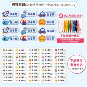 男の子用パッケージC(刺繍ネームシール+防水カップシール) - ご注文の際はお名前をご記入ください