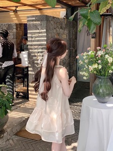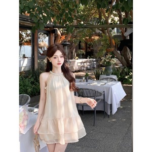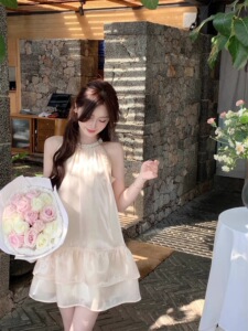 リゾートスタイルシーサイドマーメイドホルターネックドールドレス女性の新しい夏の気質ドレス
