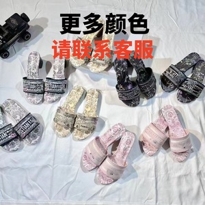 女性用サマーディスリッパ、フラットソールアウターウェア、刺繍文字、女性用カジュアルホリデービーチサンダル