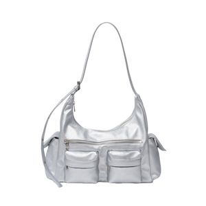 シープスキン調の鮮やかなシルバーのポケットバッグ