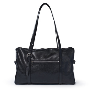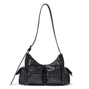 羊皮の質感を備えたブラックのモーターサイクルバッグ