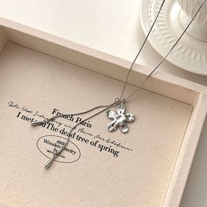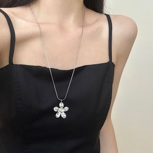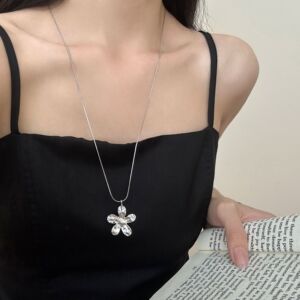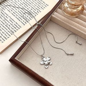 韓国版の引き出し式フラワーネックレス新しいイントレンドレディースシンプルニッチファッションロングセーターチェーンスネークボーンチェーン