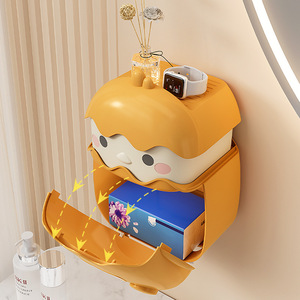 クリエイティブ壁掛けティッシュボックスパンチフリーバスルームリビングルーム収納ボックストイレチキン漫画ティッシュボックス卸売