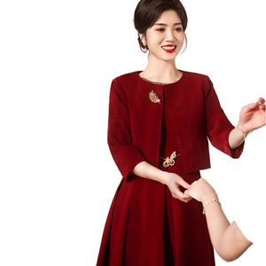 ママの結婚式の宴会ドレスセット 2025 新しいハイエンドライト高級ハイエンドツーピース冬の結婚式の義母のドレス