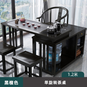 1.2M黑檀色 旋转茶桌单桌 送全自动煮茶套装