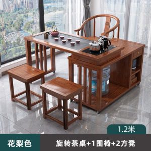 1.2M花梨色 旋转茶桌+1围椅+2方凳 送全自动煮茶套装