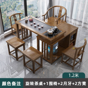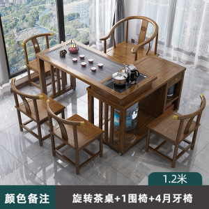 1.2M旋转茶桌+1围椅+4月牙椅丨颜色备注 送全自动煮茶套装