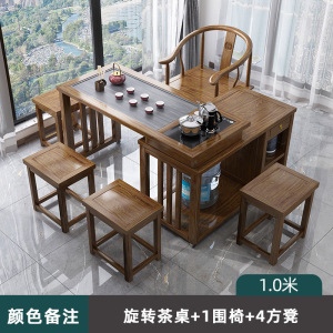 1.0M旋转茶桌+1围椅+4方凳丨颜色备注 送全自动煮茶套装