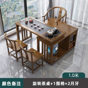 1.0M旋转茶桌+1围椅+2月牙+2方凳丨颜色备注 送全自动煮茶套装