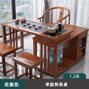 1.2M花梨色 旋转茶桌单桌 送全自动煮茶套装