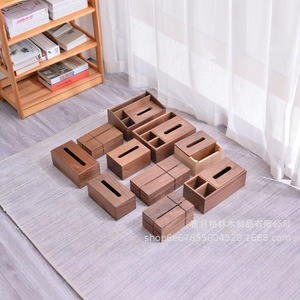 黒胡桃木ティッシュボックス茶卓収納多機能実木ティッシュボックスデスクトップリモコン収納ティッシュボックス