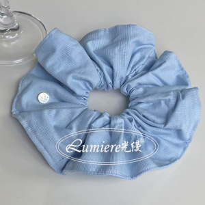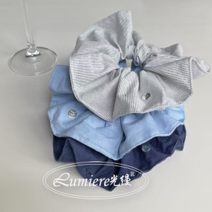 日本と韓国のミニマリストスタイルの黒と白のストライプのソリッドカラーデニムブルーヘアリングハイエンドシルバー小さなラウンドラベルファッションヘアロープ女性用