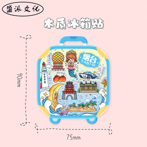 山東省煙台蓬莱閣八仙ムーンベイランドマーク木製文化創造冷蔵庫マグネット磁気中国風旅行お土産