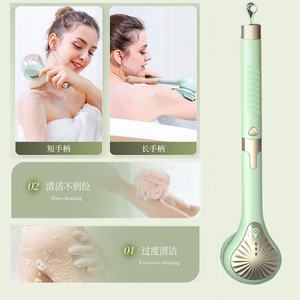 家庭用マルチブラシヘッド電動バスブラシロングハンドル充電式背中こすりバス器具強力な回転振動防水バスブラシ