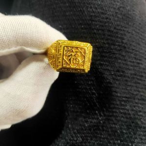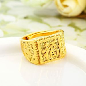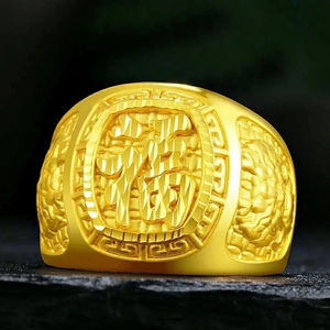 砂金ジュエリー富と幸運メンズリングライト高級模擬ゴールドチタン鋼リングリングストールオープンリング卸売