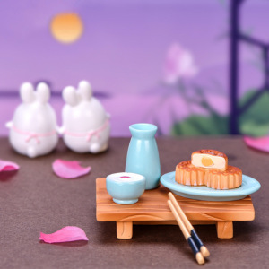 中秋節をテーマにしたバニー人形月餅蓮モデルリビングルームブックデスクトップ装飾品ベーキングケーキデコレーション