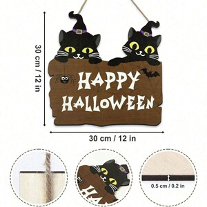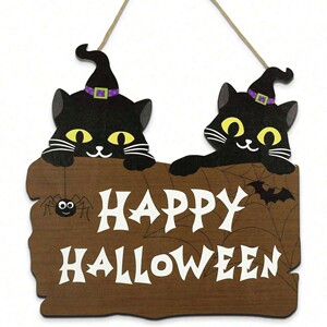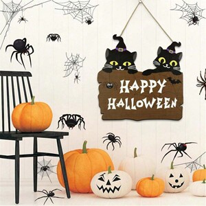 ハッピーハロウィン木製ウォールアート黒猫魔女壁コウモリ木製ハロウィン装飾