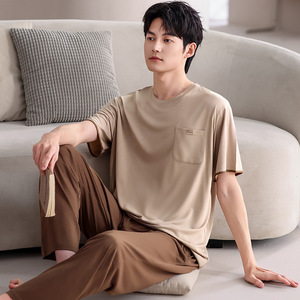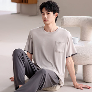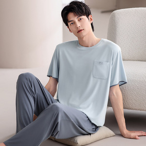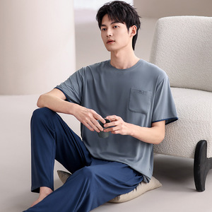 男性用パジャマ夏の新しいモーダル半袖ズボン 2 点セットティーンエイジャー薄型スタイルは家の服の外で着用できます大きいサイズ