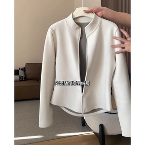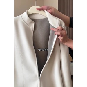 DeRong 厚みのあるスタンドカラー長袖スウェットシャツジャケット女性のための 2025 秋と冬の新しい暖かいダブルジッパーカーディガンインナートップ