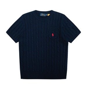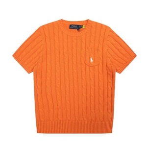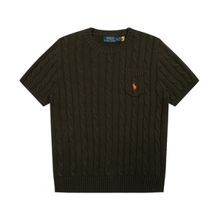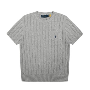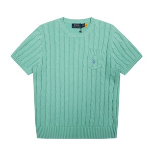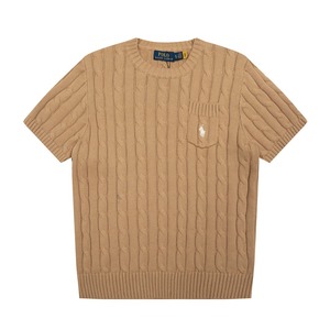 【ハイバージョン】RLラフポニー クラシック四季ラウンドネック無地ポニー刺繍ポケットニット半袖