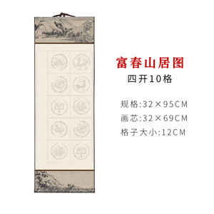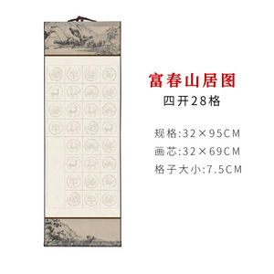 富春山の住居の絵、四つ折り、二つ折り、七文字