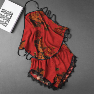 2-300斤の夏の新型の氷糸のお腹のポケットのスーツのストラップのセクシーな清涼なプリントの露背の下着のショートパンツの薄いタイプ