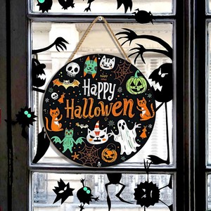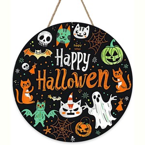 ハロウィンファミリーデコレーションハロウィンゴーストキティ木製ラウンドロゴロゴクリエイティブハロウィンデコレーション