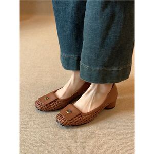 3.5cmと34-40ヤードのツバキの通気性の浅い口の女子学生は透かし彫りの優雅な太さと方の頭の復古の靴を編みます。