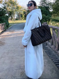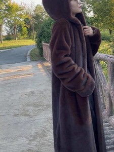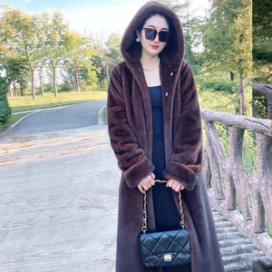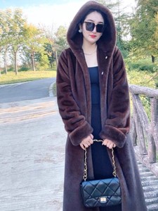 25冬の新型ミンクの毛皮のコートの女性の高級感は帽子までだらだらしています。