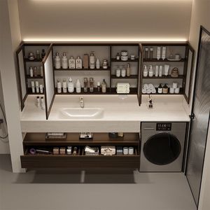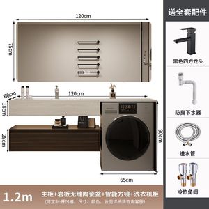 【岩板热弯一体盆】+智能镜柜-120厘米【多功能洗衣柜】萧山卫浴