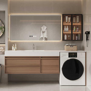 【岩板热弯一体盆】+智能镜柜-150厘米【多功能洗衣柜】萧山卫浴