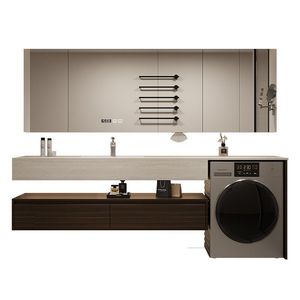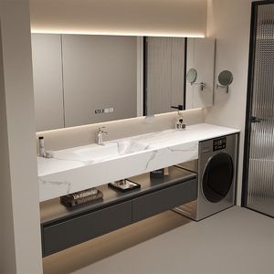 【岩板热弯一体盆】+智能镜柜-190厘米【多功能洗衣柜】萧山卫浴