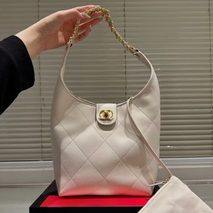 牛革ホーボー脇の下バッグ 2025 新レトロ大容量ショルダーバッグレディースバッグチェーン菱形チェーンバッグ