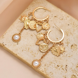 ラージサークルイヤリング卸売ヨーロッパとアメリカのクロスボーダー合金サンラブアクセサリーライトラグジュアリーハイエンドパールタッセルイヤリング