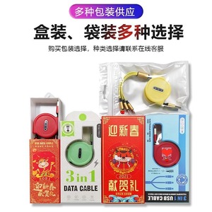 マカロン伸縮データケーブルスリーインワン小さなギフト卸売印刷ロゴストレージ高速充電 1 対 3 充電ケーブル
