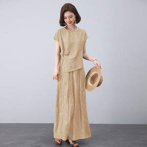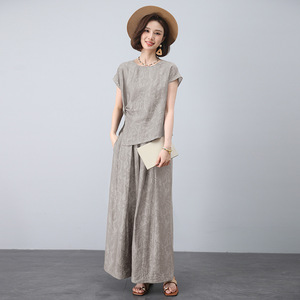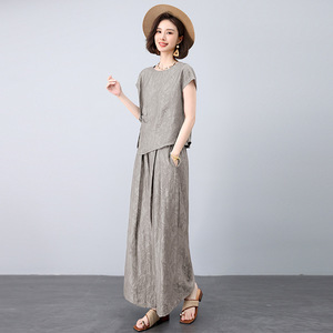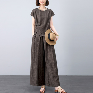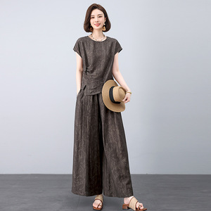 プラスサイズの女性の夏の新しいファッションスーツ、母親向け、ゆったりしていてお腹をカバーし、スリムでスタイリッシュでカジュアルな衣装の完全なセット