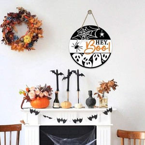 ハロウィンゴーストフロントドア装飾不気味なクモの巣ポーチ面白い木製花輪パーティー屋内吊り下げ装飾