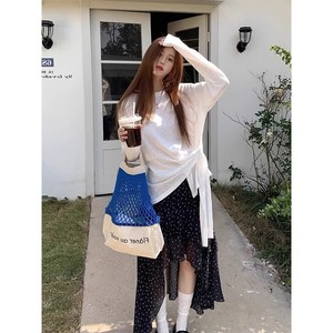不規則な白の微透け長袖シャツ、女性用夏のリボンデザイン、純粋な欲望、ゆったりとしたニッチな日焼け止めシャツ、トレンディなトップス