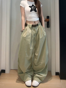 ホットセール白空挺部隊オーバーオール女性の夏のルーズスリムレトロスポーツパンツデザインワイドレッグシザーパンツ
