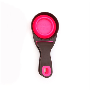 ペットボウル折りたたみキャットフードスプーンペットウォーターボウル計量カップドッグフードスプーンクリップ付き密封穀物シャベルシリコーン犬ボウル