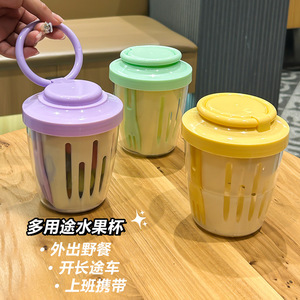 二重カットサラダカップ果物箱弁当箱野菜カップ高颜値蓋付きフォーク付き携帯二重