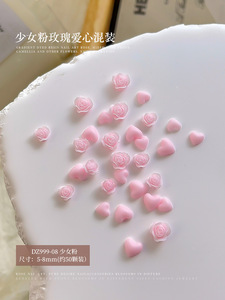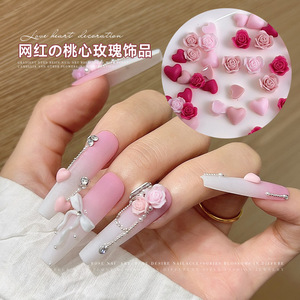 インターネット有名人樹脂ダイヤモンドネイルアートジュエリーミックス新しい大小ローズレッドラブローズ彫刻ネイルアート装飾アクセサリー
