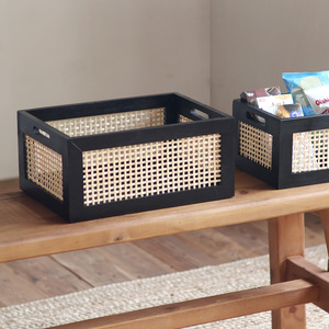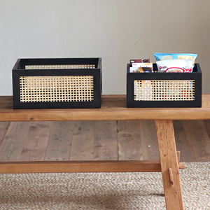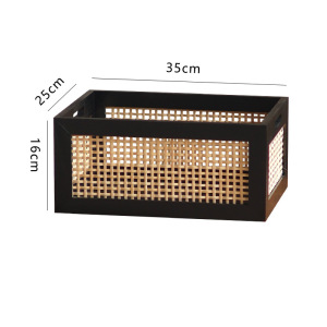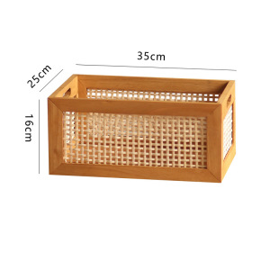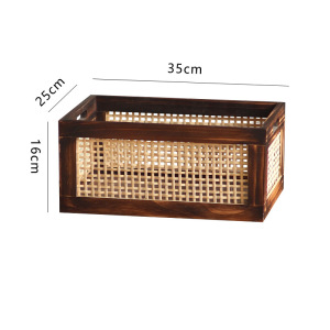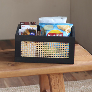 复古收纳筐桌面杂物收纳篮手工竹编藤编实木收纳盒长方形储物筐