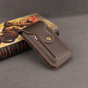 新しい本革ウエストバッグ、ベルト付き携帯電話バッグ、多機能垂直屋外携帯電話ケース、超薄型防水携帯電話バッグ