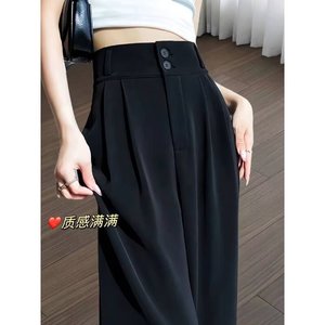 黒のダブルボタンカジュアルストレートスーツパンツ女性の夏の新しい大きいサイズファットmmハイウエストドレープヒップカバー痩身ワイドレッグパンツ