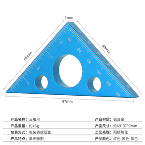 铝合金直角尺木工工具三角尺高度尺公制英制45度90度角尺高精度