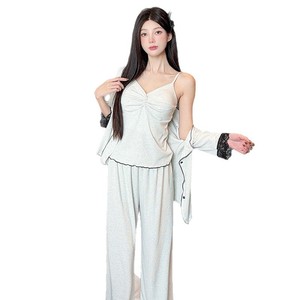 伸縮性のあるリブ編みモダール素材のパジャマ3点セット、キャミソール、七分袖、長ズボン、女性用、春夏、外出着としても使えるルームウェア