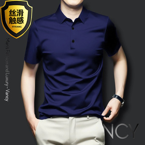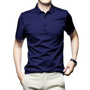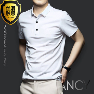 アイスシルクポロシャツ半袖メンズ夏シルキー光沢のあるアイロン不要のしわ防止Tシャツクールで通気性のあるラペルTシャツ男性用